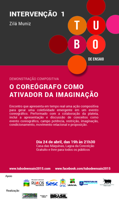 Zilá Muniz propôs uma ação compositiva como geradora de uma coletividade emergente, apresentando o trabalho do coreógrafo como ativador da imaginação, em um processo de composição em tempo real. Para realizar sua proposta de palestra “performada”, misto entre conversa e demonstração, contou com a colaboração de alguns indivíduos da plateia.