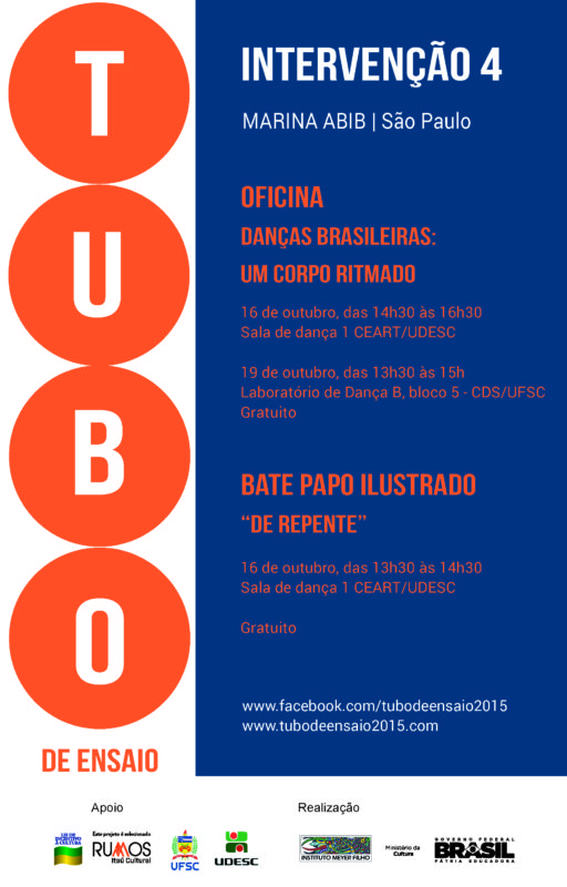 Proposta: A dançarina Marina Abib conduz o público por uma conversa ilustrada sobre os saberes coletivos da cultura tradicional brasileira. Sua experiência na dança e sua pesquisa teórica e prática com as manifestações populares brasileiras servem de base para o desenvolvimento de uma reflexão sobre a tradição enquanto recordação.