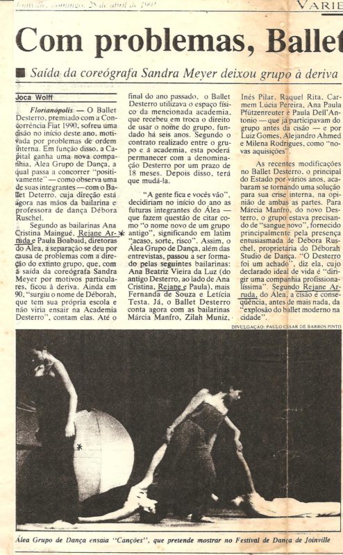 - Diário Catarinense. Cisão Ballet Desterro e formação do Grupo Álea. 05.06.1991