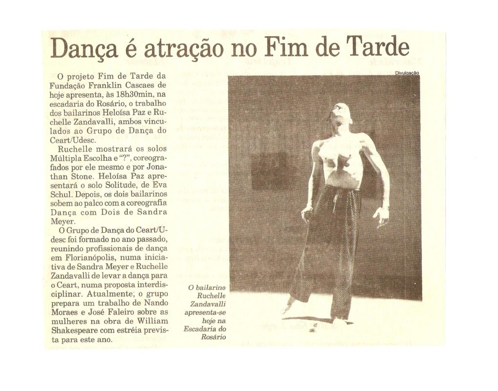 - Grupo de dança do CEART/UDESC. Programa Fim de Tarde na Escadaria do Rosário.1991.