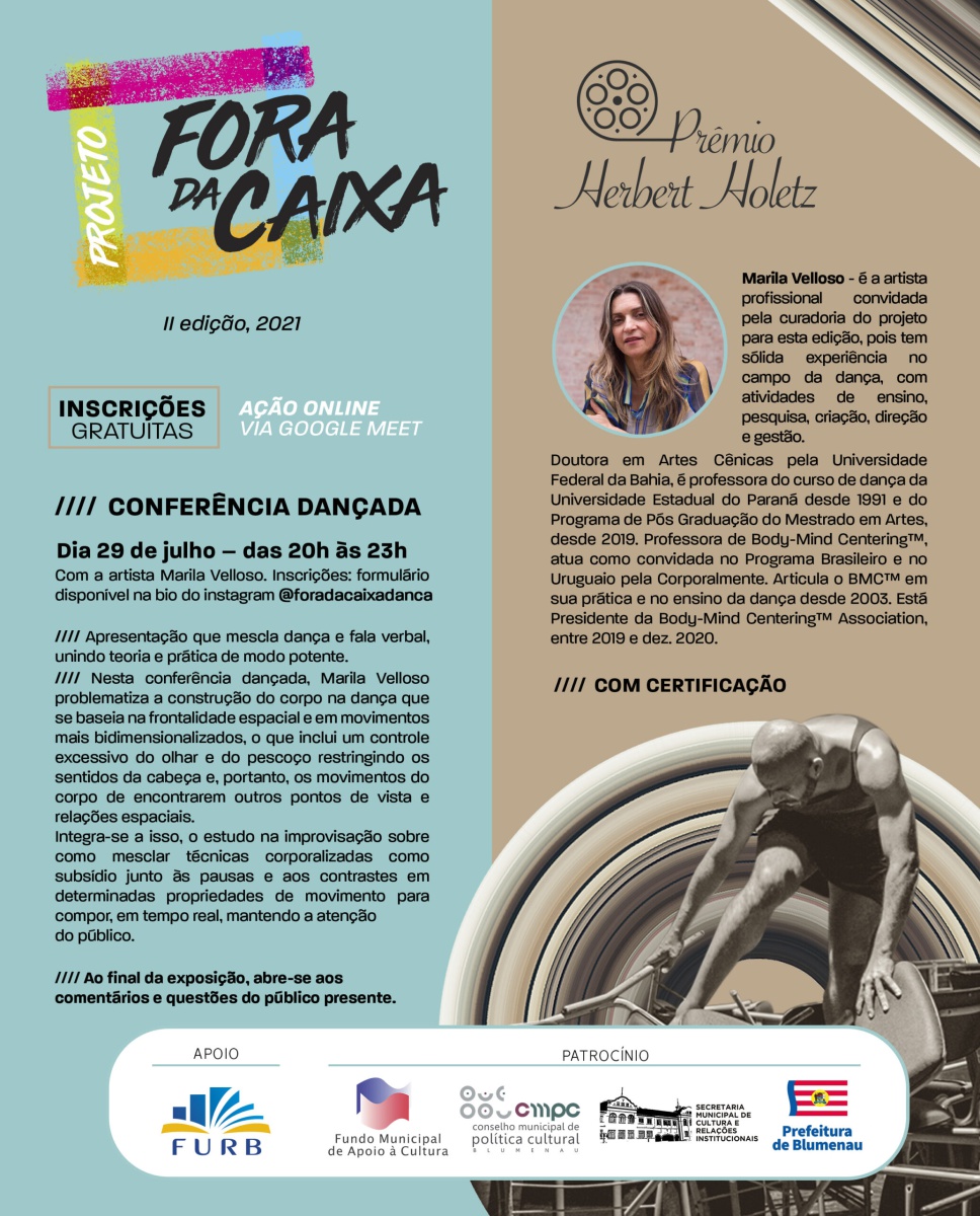 Patrocínio: Fundo Municipal de Apoio à Cultura; Fundação Cultural de Blumenau; Prefeitura de Blumenau. Projeto contemplado pelo Prêmio Herbert Holetz.